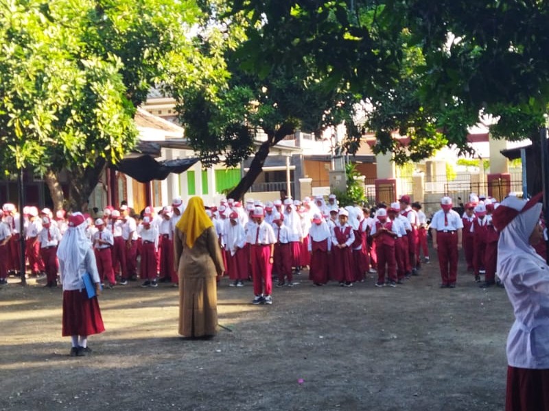Kegiatan awal siswa siswi setelah libur puasa dan lebaran mengikuti Upacara Bendera.