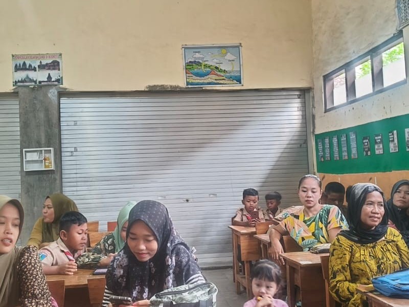 Wali murid dari kelas 1 sampai kelas 5 menghadiri rapat pembagian raport semester 2.